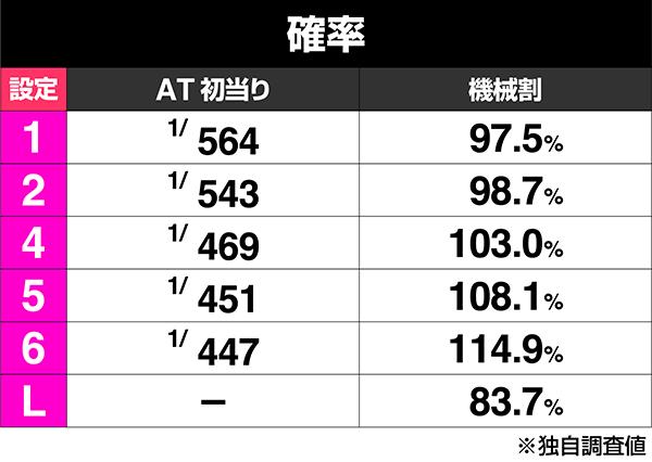 設定は6段階。ですが、設定Lが含まれるため、実質5段階と言っていいでしょう。
