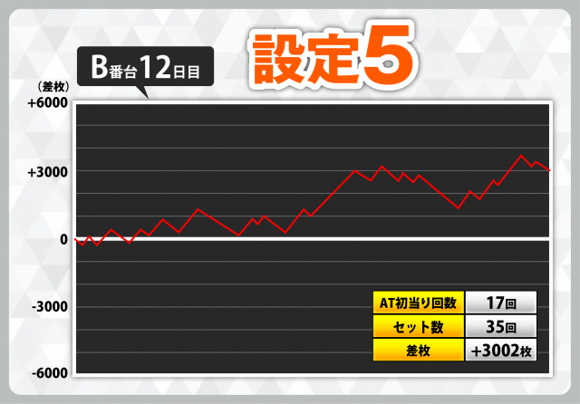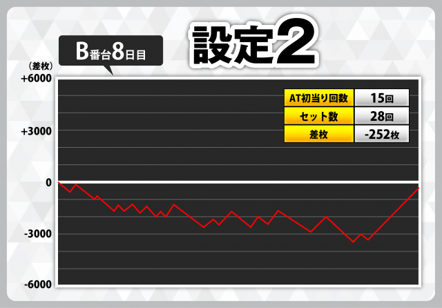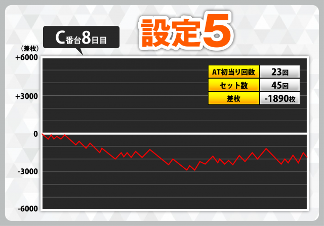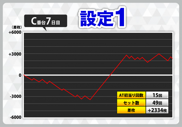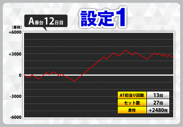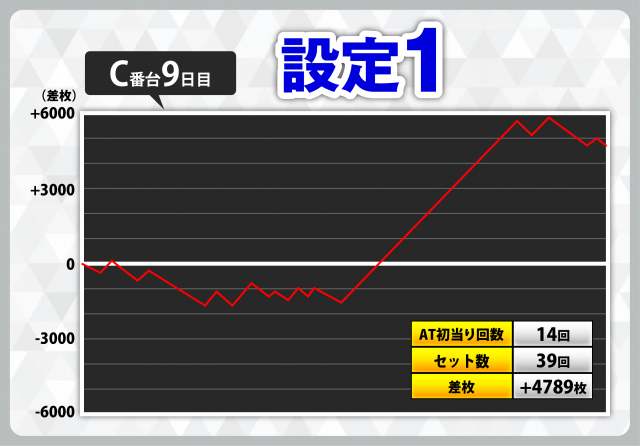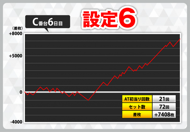| 1 | +7408枚(設定6) | −4908枚(設定2) |