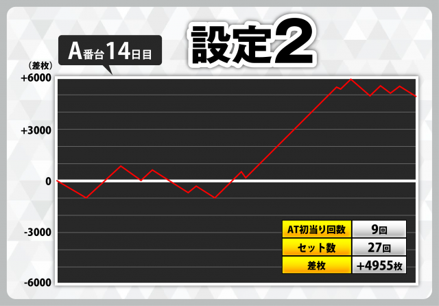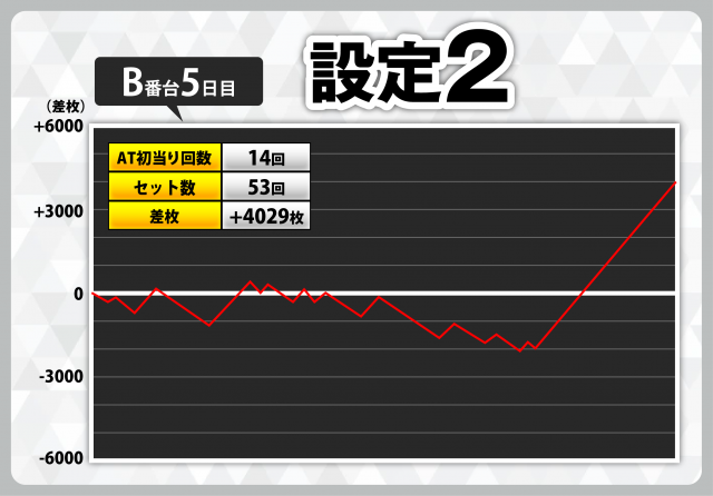 | 2 | +4955枚(設定2) | −4500枚(設定2) |