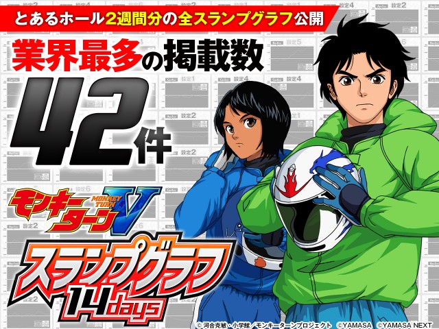 さぁ、今回もとあるホールから入手した、人気機種のスランプグラフを設定付きで掲載していきます! 今回は『スマスロモンキーターンV』の2週間分のスランプグラフをいただきました。