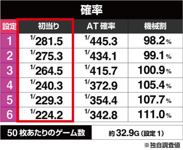 | AT初当り出現率(実戦値) |