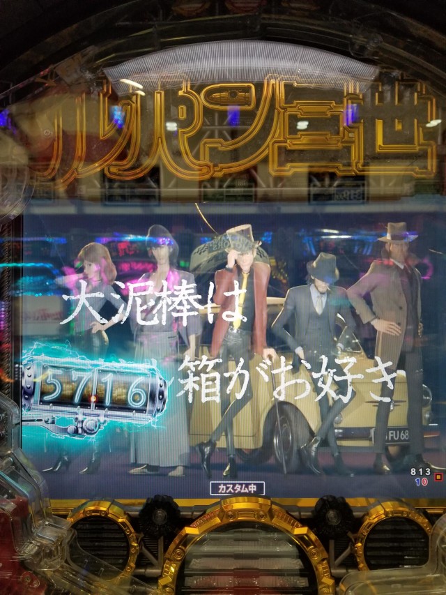 『Pルパン三世 THE FIRST』にて、通常時に集結カットインと共にドル箱タイプライタ演出で大当りゲットですねん!