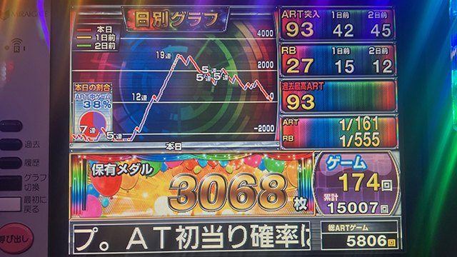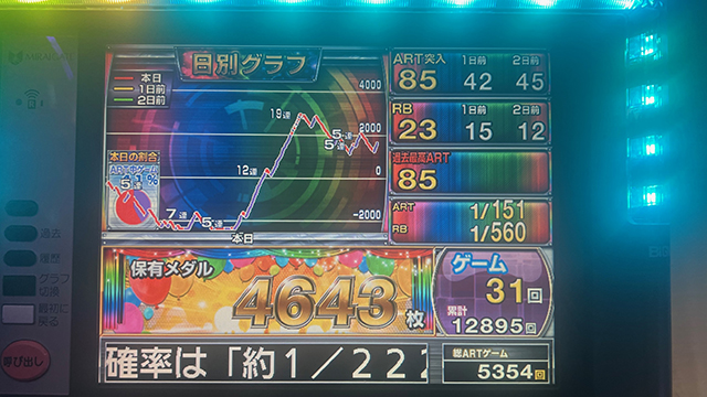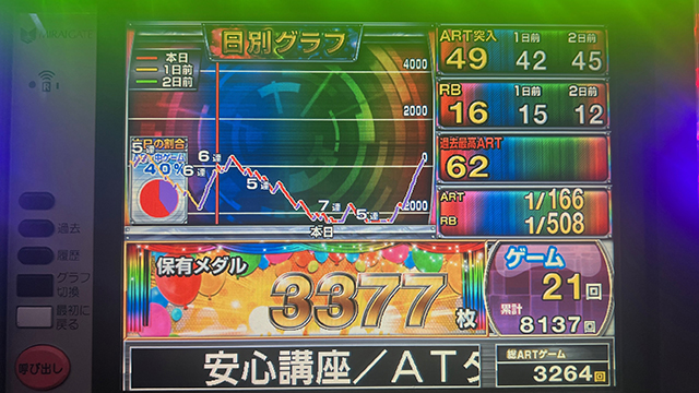 個人的な実戦結果としては、ギリギリプラスの状態をキープしてヤメたという、少し弱気な内容になってしまいました。
