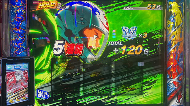 ここは2セットで終了してしまったけれど、ヘルメットにロゴ+キラキラでモードも良さそうだし、次の初当りも早そうな感じがするので、どんどん回していきましょー!
