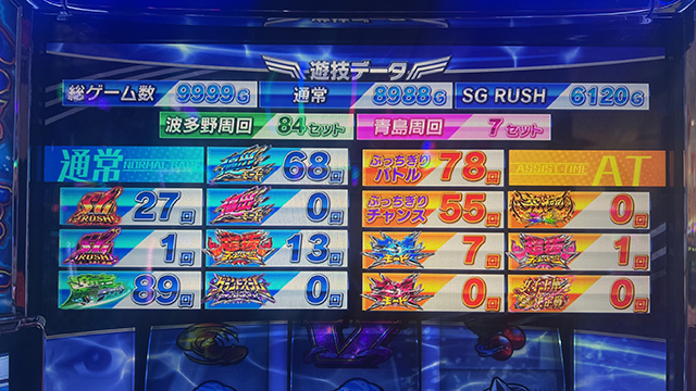 ちなみにヤメた時の台側の画面はこんな感じでカンストしていましたが、ゲーム数を見るとデータ機とは若干の差がありました。最終データは台の数値で出したいと思います。