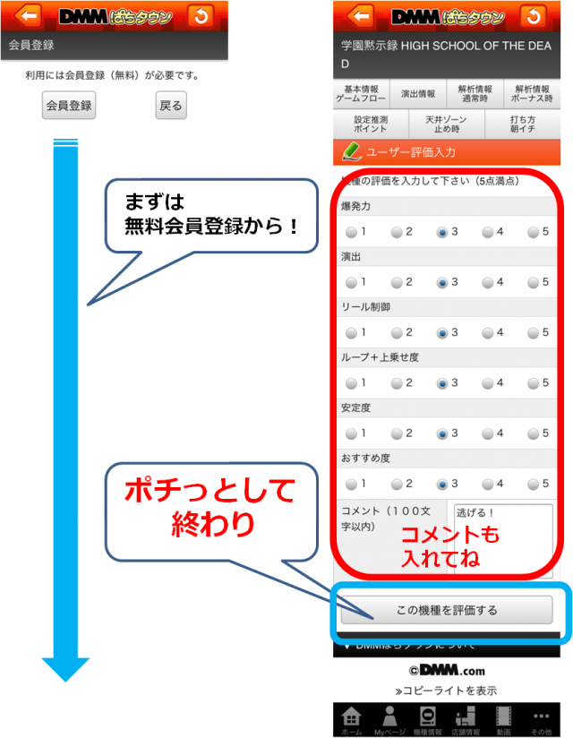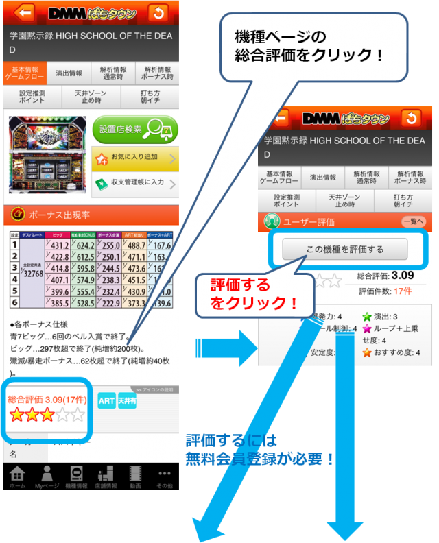■機種を評価するにはDMMぱちタウンの会員登録が必要になります。