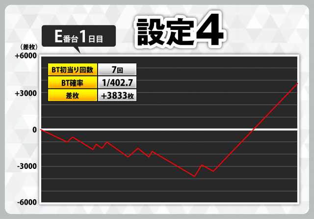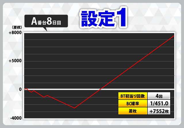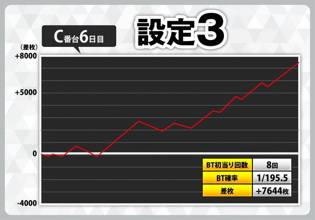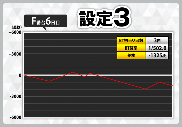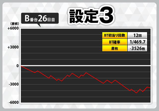 | 3 | +7552枚(設定1) | −6446枚(設定1) |