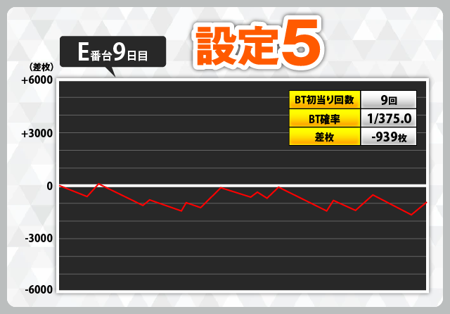 | 1 | +10040枚(設定6) | −7293枚(設定2) |