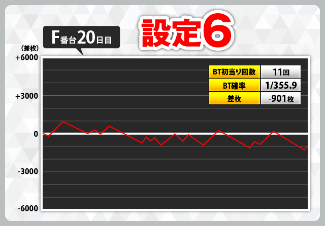 データを見ると全ての設定で波が荒いのが見受けられるので、少しでも安定しそうな設定6を入れることで、高設定が投入されているということをアピールする狙いがありそうです。