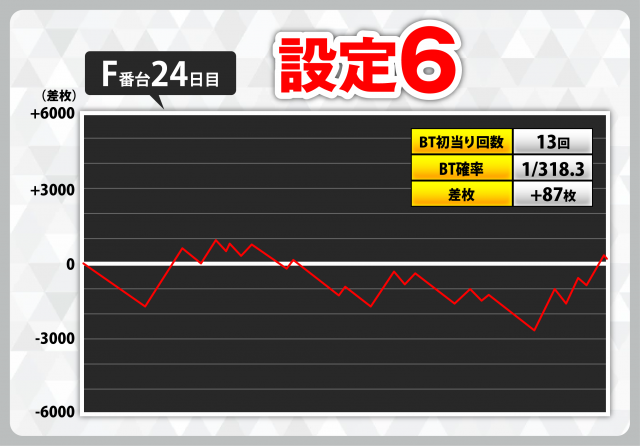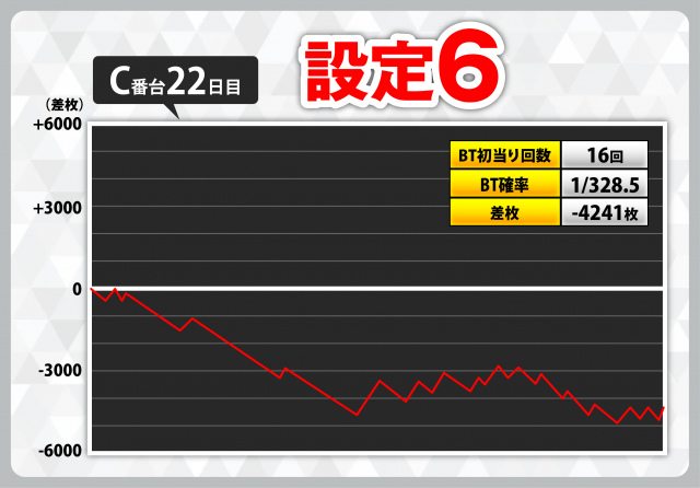 これは店長さんのコメントにもありましたが、波が荒いため設定6でも捨てられてしまうことがよくあるそうです。