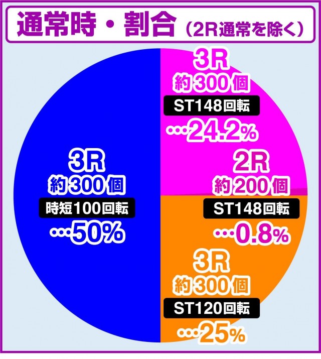 さて、ここではボーナスの話を。ST突入のメイン契機となるボーナスは2つ。いずれも1/329.9の液晶図柄揃いで当選する、3Rのボーナスです。