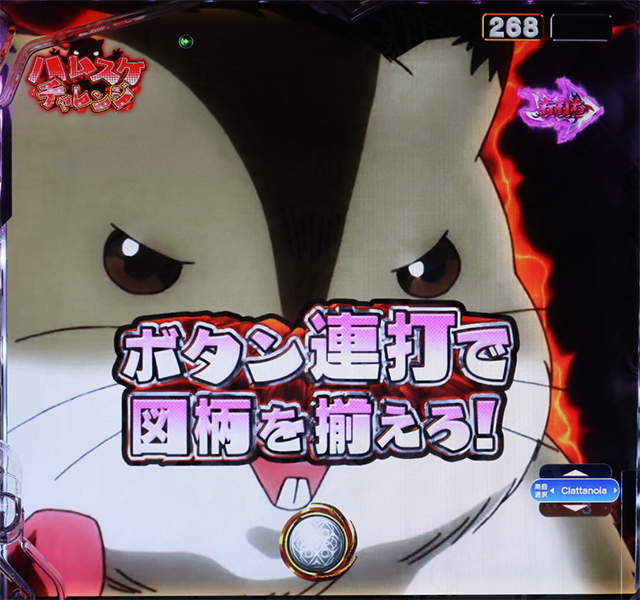 本機の液晶図柄揃い確率は1/329.9で、約300個の払い出し。その他、2R分の出玉がもらえる「ハムスケチャージ」も存在します。
