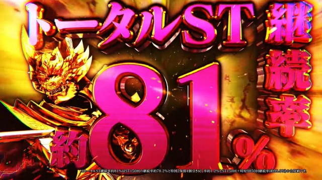 トータルST突入率は約77%、高確率時大当り確率1/98.9のST継続率はトータルで約81%を誇り、右打ち時の大当り出玉はALL1500個と申し分なし。