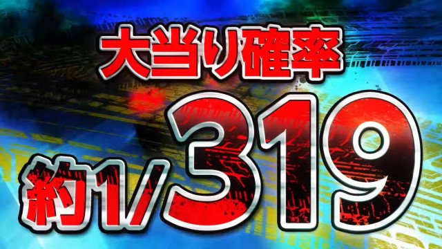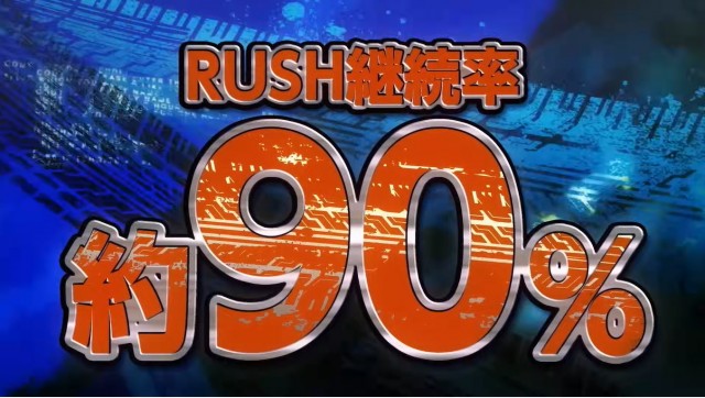 コンテンツの持つ疾走感を感じられるこのムービーによると、大当り確率は約1/319でRUSH突入時の継続率は約90%とのこと。