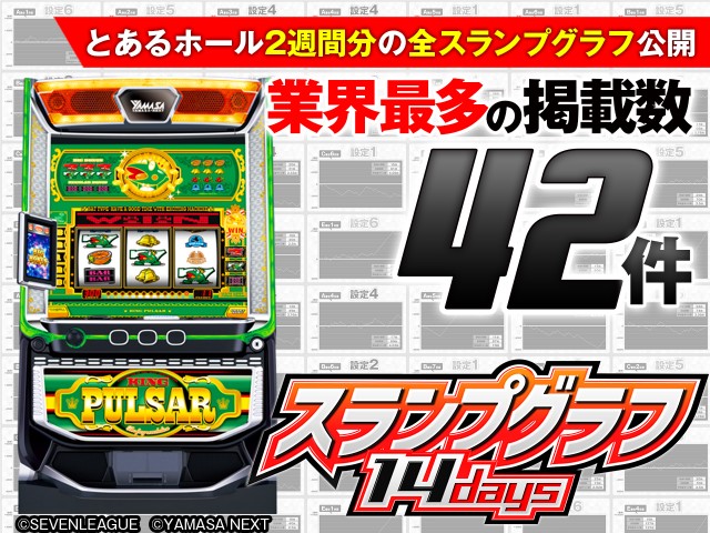 さぁ、とあるホールから入手した、人気機種のスランプグラフを設定付きで掲載&考察していく当企画! 今回は『スマスロキングパルサー』の2週間分のスランプグラフをいただきました。