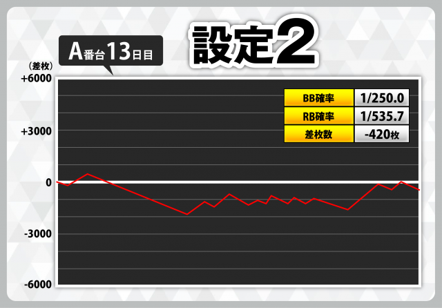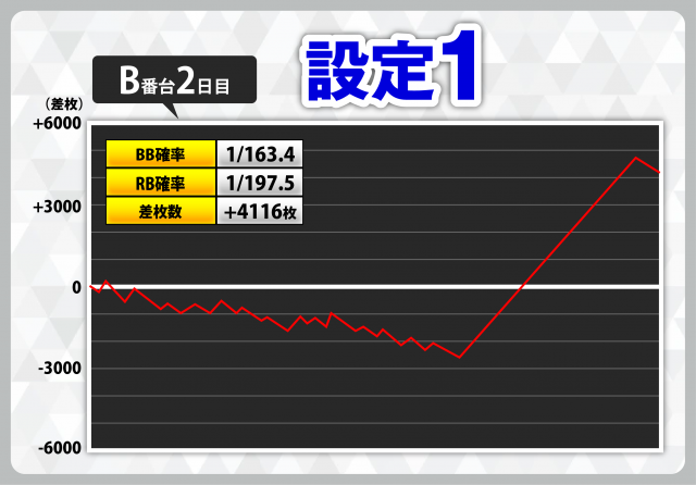 | 2 | +4116枚(設定1) | −3898枚(設定1) |