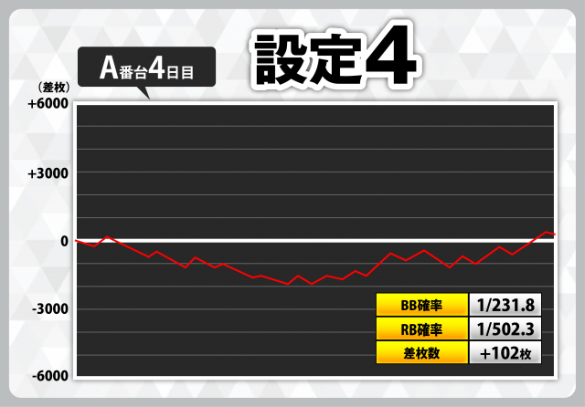 | 3 | +1978枚(設定6) | −2927枚(設定4) |