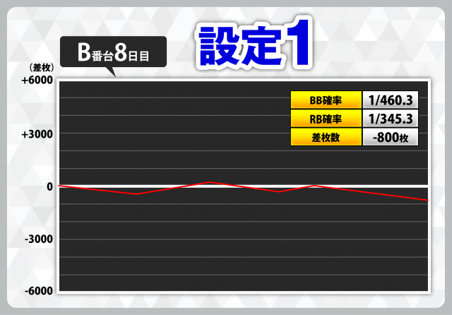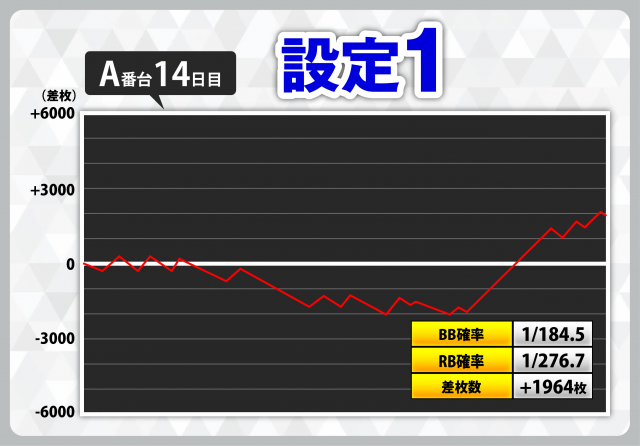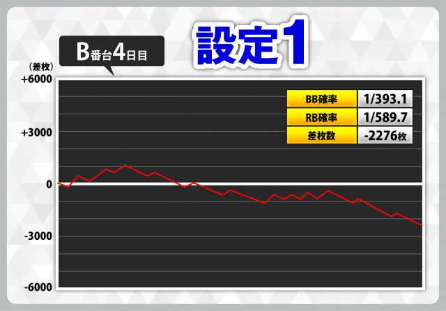 | 1 | +6793枚(設定6) | −5372枚(設定1) |