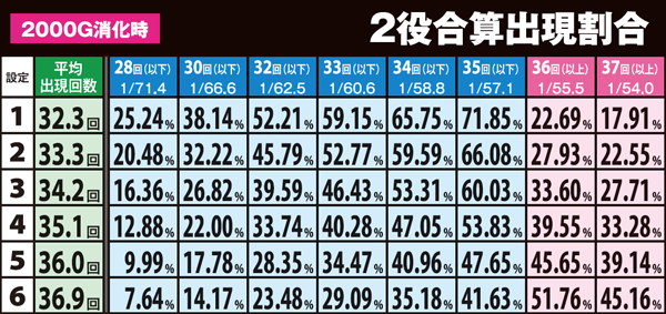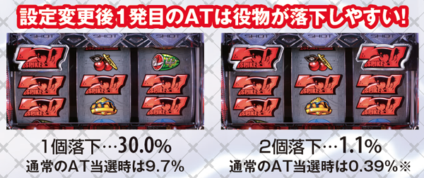 設定変更後は浅い天井が選ばれやすく、最初のATで役物が落下しやすいのが特徴。また、偶数設定の場合は通常からのスタート割合が高いので、どうせ打つなら朝イチから勝負したい。