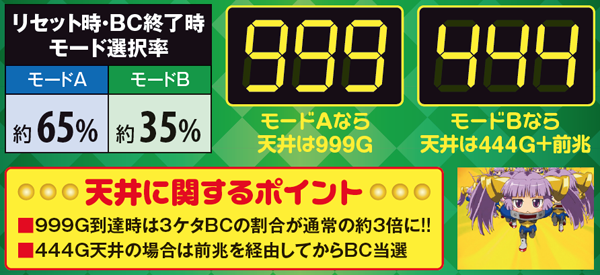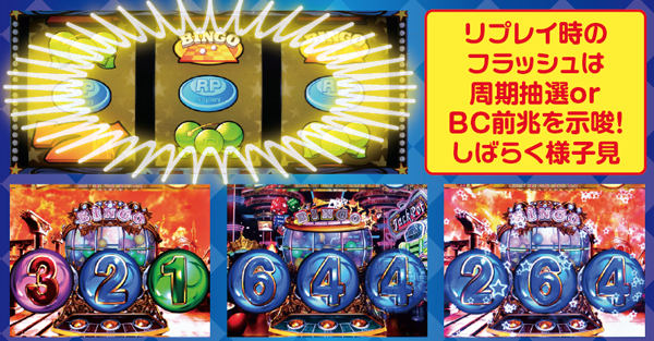 ゾロ目ゲーム数到達時は周期抽選が行われるチャンスであるが、中でも111Gと333Gが特にアツく、次いで555Gの期待度が高い。天井振り分けのある444Gとともに狙い目となるので必ず覚えておきたい。