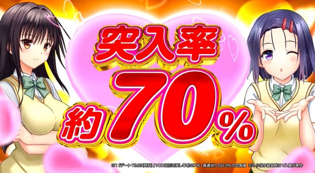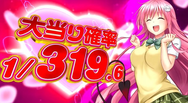 まずパチンコの『P ToLOVEるダークネス』は、大当り確率1/319.6、STタイプのRUSHを搭載したミドル機で登場。