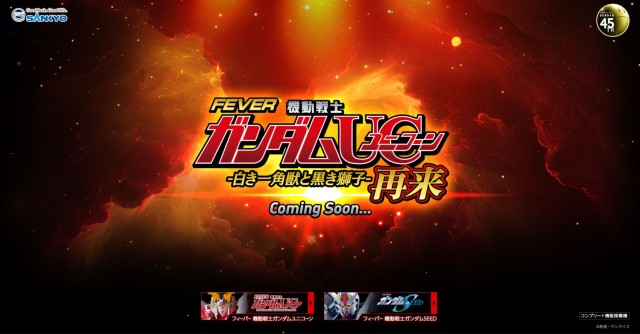 SANKYOのガンダムシリーズ専用サイトが『フィーバー 機動戦士ガンダムユニコーン 再来 -白き一角獣と黒き獅子-』仕様に変更され、シリーズの続編が登場することが予告された。