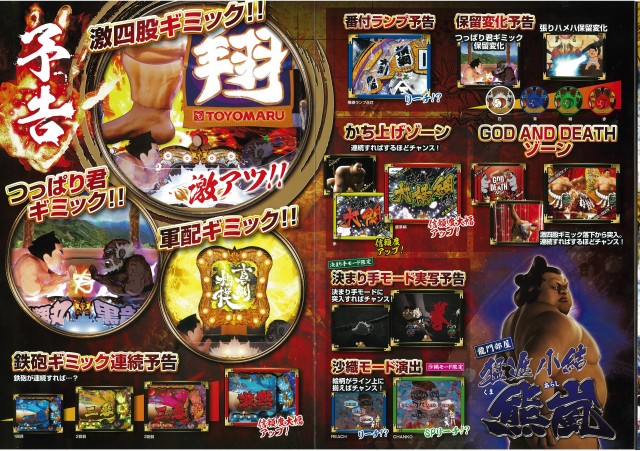 他にも液晶中央に突如として現れる「軍配ギミック」や盤面右側に設置され、続けば続くほど期待度がUPする「鉄砲ギミック」など相撲ファンにも堪らない演出が盛り沢山となっている。