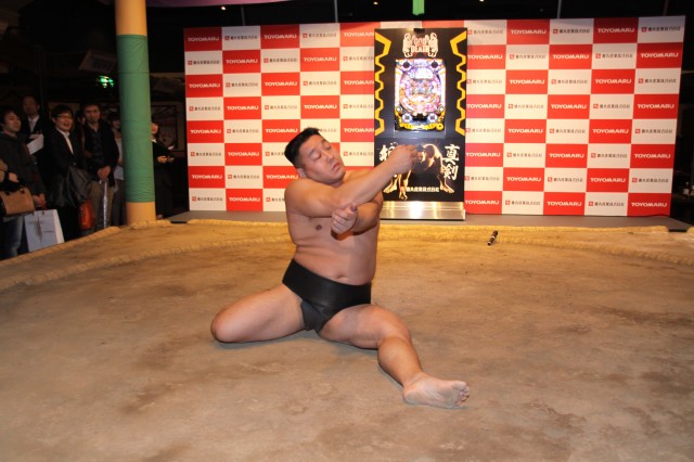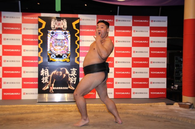 最後に、同社企画本部の西垣勝太氏が挨拶、モチーフにした相撲へのアツい思いのたけを語っていた。そして記者団からの質疑で『セクシーフォール』との差異についての質問に関しては16R出玉が『セクシーフォール』で50%だったのに対して、本記では97%まで底上げした事等を説明した。