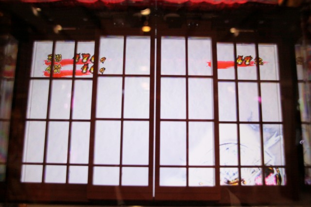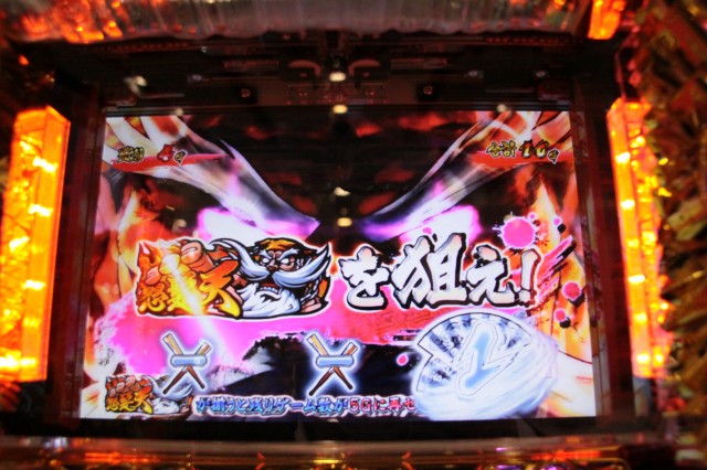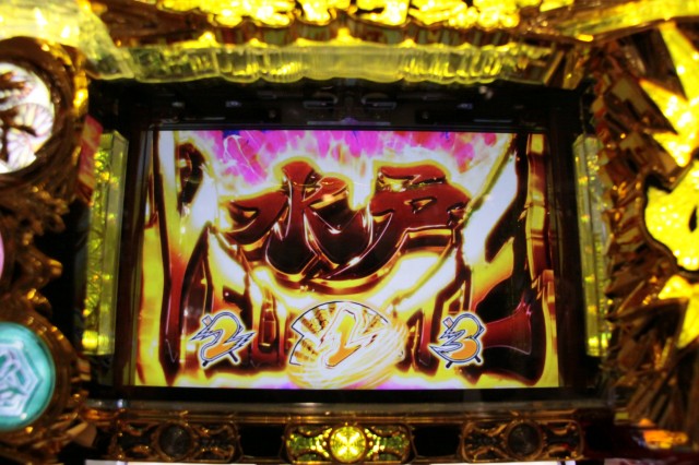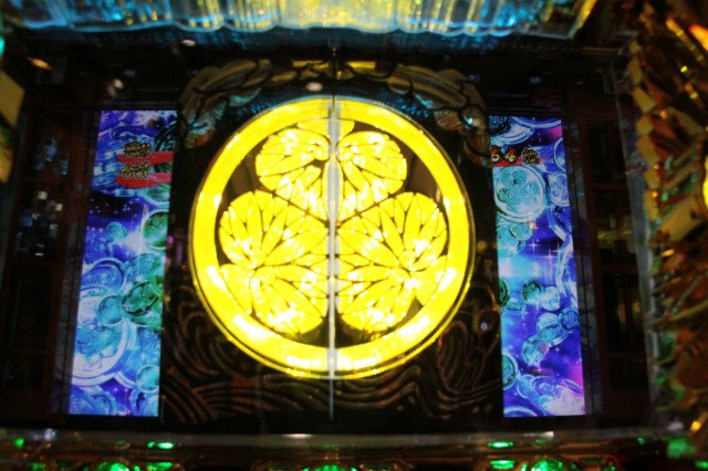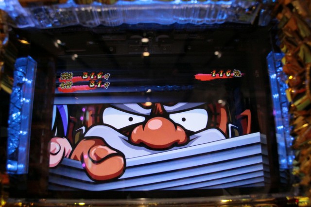 筐体にはド迫力の印籠シャッター、障子シャッター、印籠ランプや風車フラッシュ、喝フラッシュ等インパクト十分の役物群があしらわれ、ドハデな演出を期待させる。