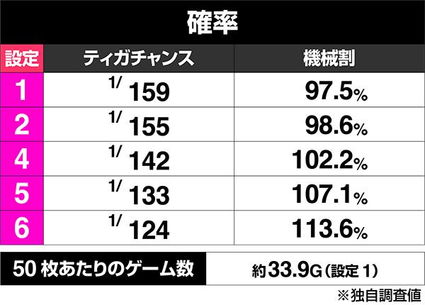 設定差という面で実戦データから分かるのは「ティガチャンス」の出現率。