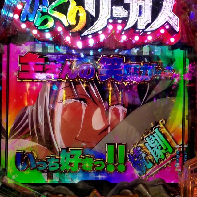 『Pフィーバーからくりサーカス』にて、大当り消化中にピエロ登場と共に、続劇予告から虹カットインの続劇・保留連チャン確定演出をゲットですねん!(モンちゃんさん)