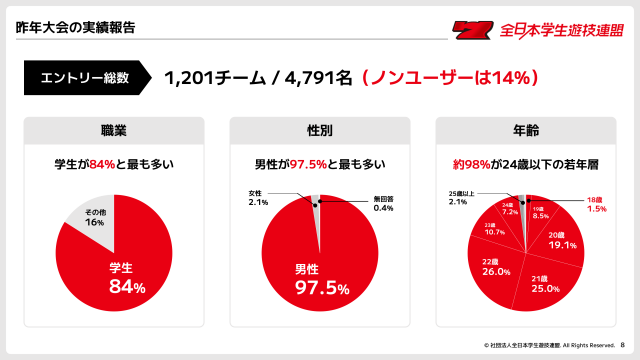 「全日本学生遊技連盟の組織内男女比を教えてください」