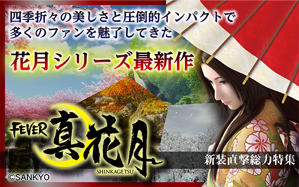今から約11年前、シンプルながらアツい演出と、四季の美麗映像、花札をモチーフにした和の世界観、そして3連チャン以上濃厚となる「花◯全回転リーチ」が話題となったシリーズの初代「CRフィーバー花月」が登場。使用された楽曲「花月」が3万枚セールスという大ヒットを記録したのも多くのプレイヤーから支持されたからこそだろう。