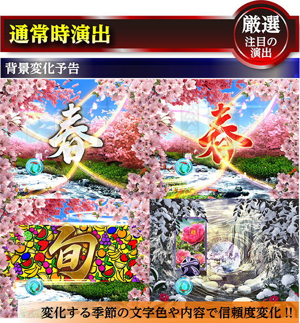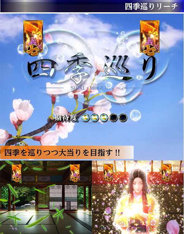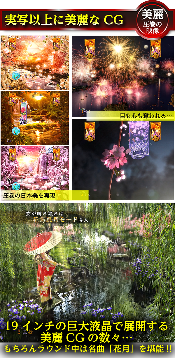 花月シリーズにおける見どころの1つでもある四季、そして花札をモチーフにした美麗映像も超進化。
