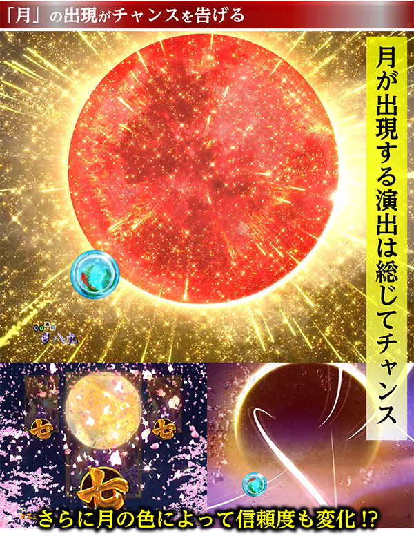 様々な予告やリーチで「月」が出現すればチャンス到来となる。