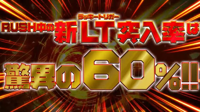 気になる本機のラッキートリガー突入率は、なんとRUSH中の大当り時の60%とのこと。