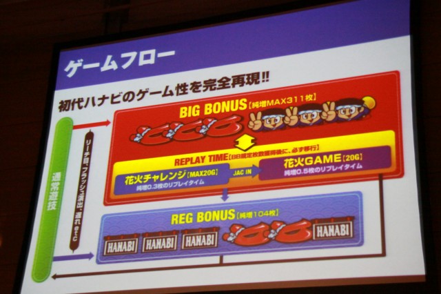 続いて同社が推進するA PROJECT第3弾になる『花火』についても説明。言わずもがなの『HANABIシリーズ』の先駆けとなった機種であり、4号機の『HANABI』の正当後継機種となる。