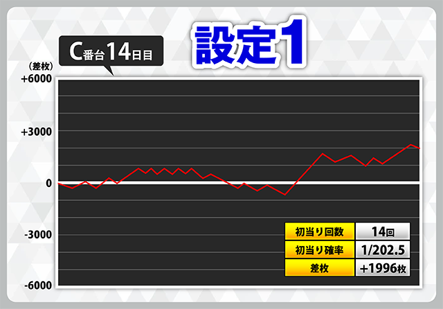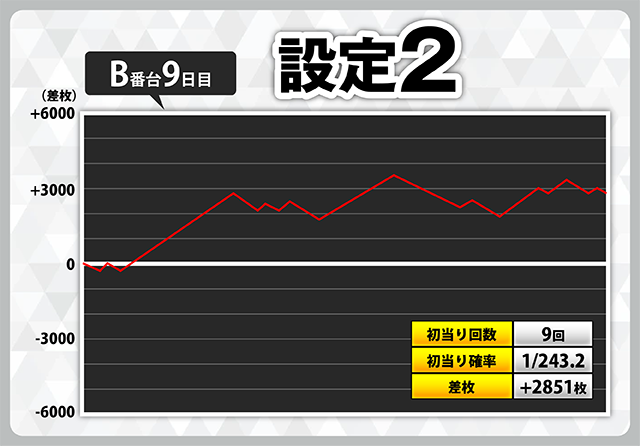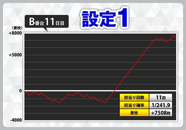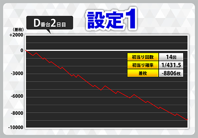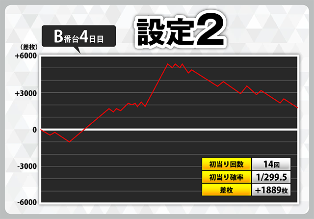 | 2 | +7508枚(設定1) | −5919枚(設定1) |