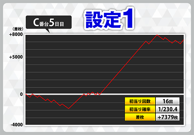| 3 | +7379枚(設定1) | −5807枚(設定2) |