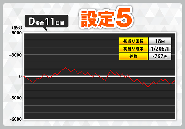 | 1 | +10036枚(設定6) | −8806枚(設定1) |