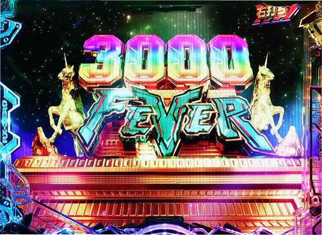 初当り時は奇数図柄揃いならRUSH突入が濃厚。7図柄揃いなら、前作でも魅力のひとつだった「3000FEVER」に当選します。偶数図柄揃いの場合は、ラウンド中の昇格演出に成功すればRUSH突入。7図柄揃い以外はいずれも2R大当りで、出玉300個獲得となります。