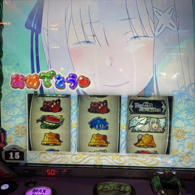 昼過ぎに4・5・6確定も出て完走し、気持ちは「このままぶん回すぞー!」なんですが、もう眠すぎて眠すぎて(笑)しんどかったんですが、3回目の完走した時に隣で打っていた友達が 「良かったね(泣)、リゼロ好きなの知ってるからこんなに出てて私まで嬉しい」って泣いてくれたんです。