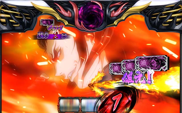 通常時や天膳BC終了後にポイント示唆が発生し、上部ランプや液晶左右にあるサイドランプの動きでポイントを示唆。筐体サイドランプから全て点灯し下パネルが消灯するパターンは内部的に多くの宿怨ポイントを蓄積していると思われる。