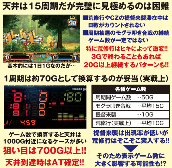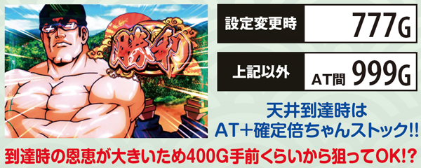 AT間999Gハマリ(設定変更時は777G)で天井到達となり、AT+確定倍ちゃんをストック。大量上乗せに十分期待できるためハマリ台は狙い目だ。