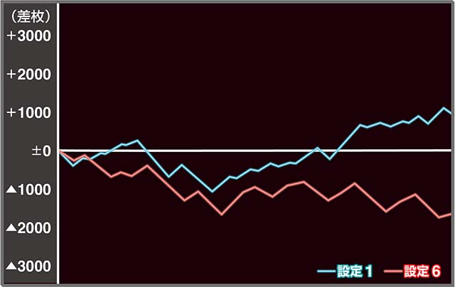 今回は設定1と6で実戦しましたが、スランプグラフを見るに結果としては設定に即していない挙動となりました…。