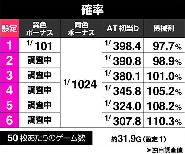 もうひとつ、設定推測をする際に注目していただきたいのが、まだ解析が出ていない異色ボーナスの確率になります。