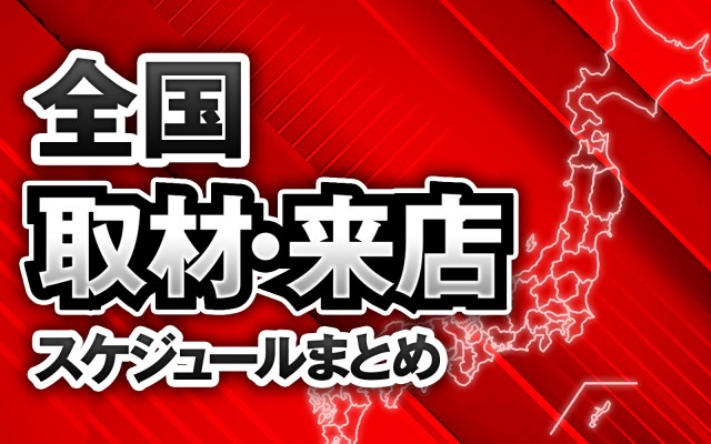 現時点で公開されている、全国の取材・来店スケジュールをまとめました。地元ホールの情報収集や、旅打ちの参考にご活用ください。