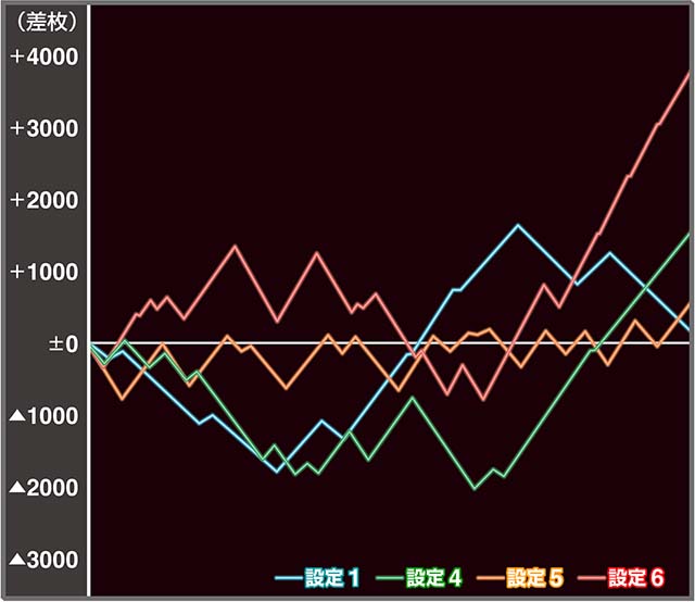 詳しいゲーム性は機種ページをご覧いただくとして、本記事では設定6の実戦データを中心に設定差に言及していきます。早速、その設定6の実戦データから見ていきましょう!