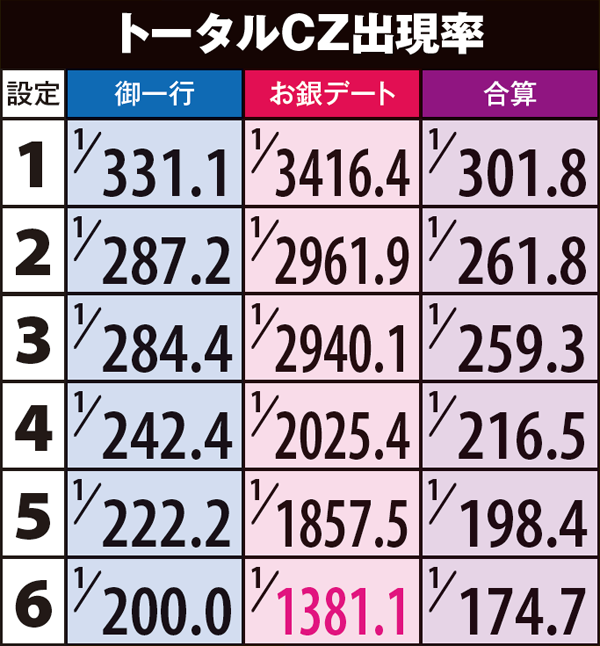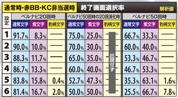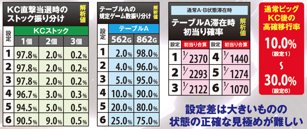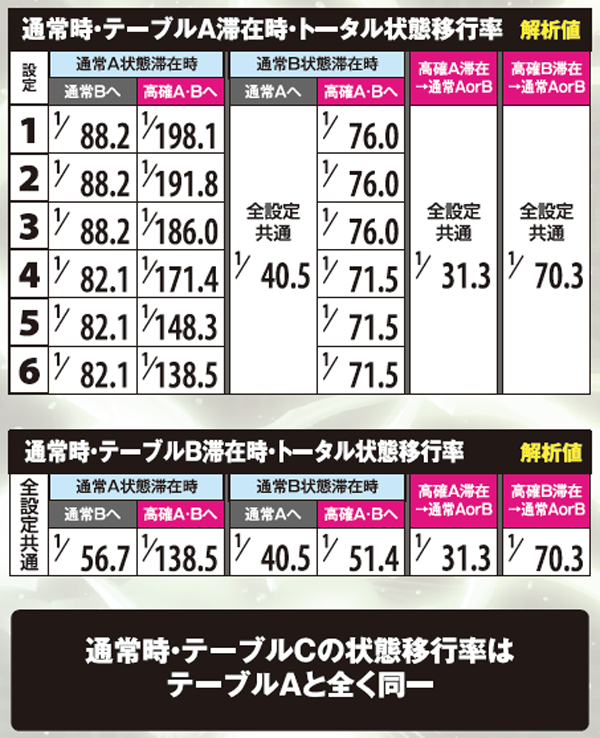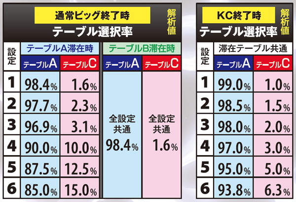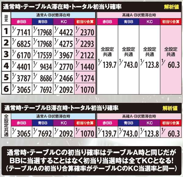 ●テーブルBは初当り確率が全設定共通でテーブルA時の設定6と同一!