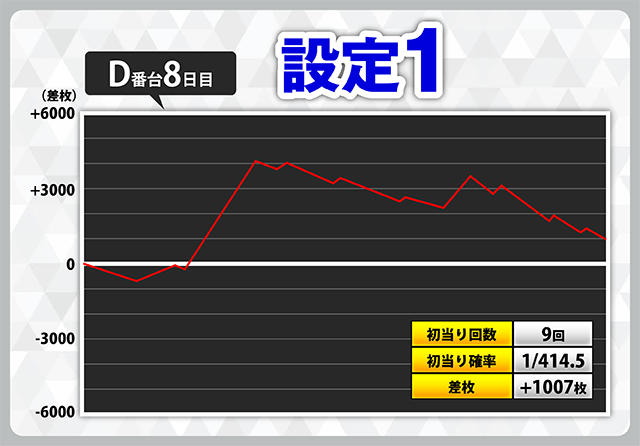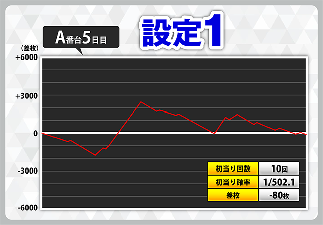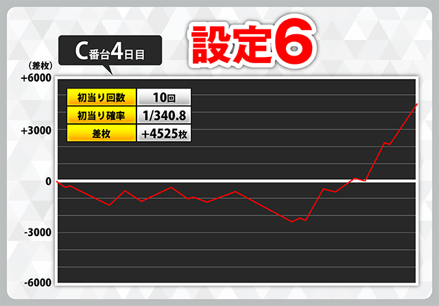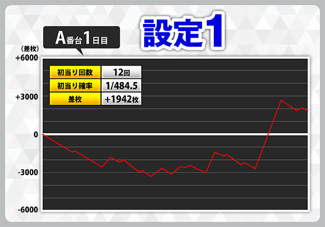 | 1 | +10849枚(設定6) | −7601枚(設定1) |